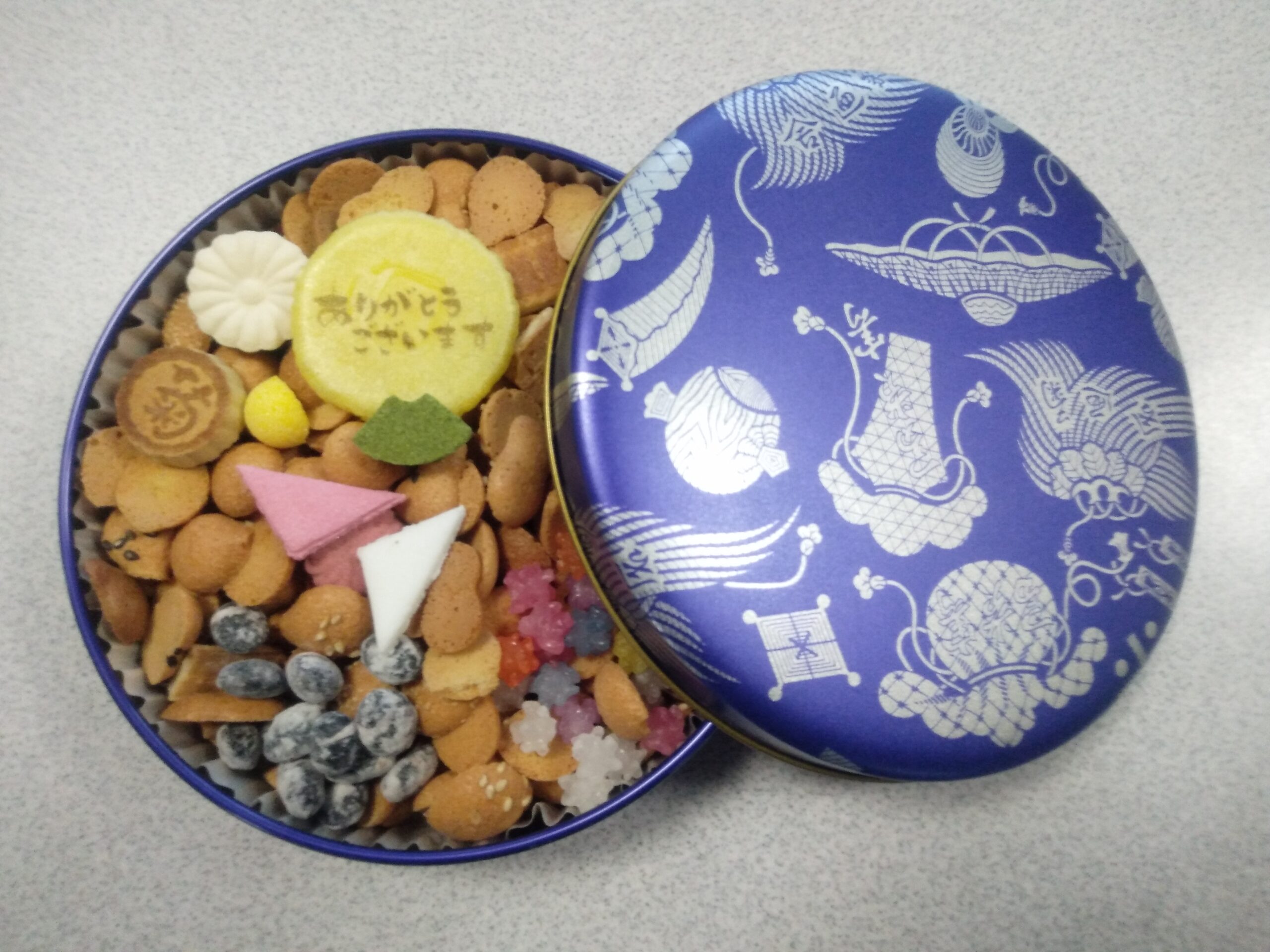 さまざまな種類の小さな干菓子や落雁、金平糖等が