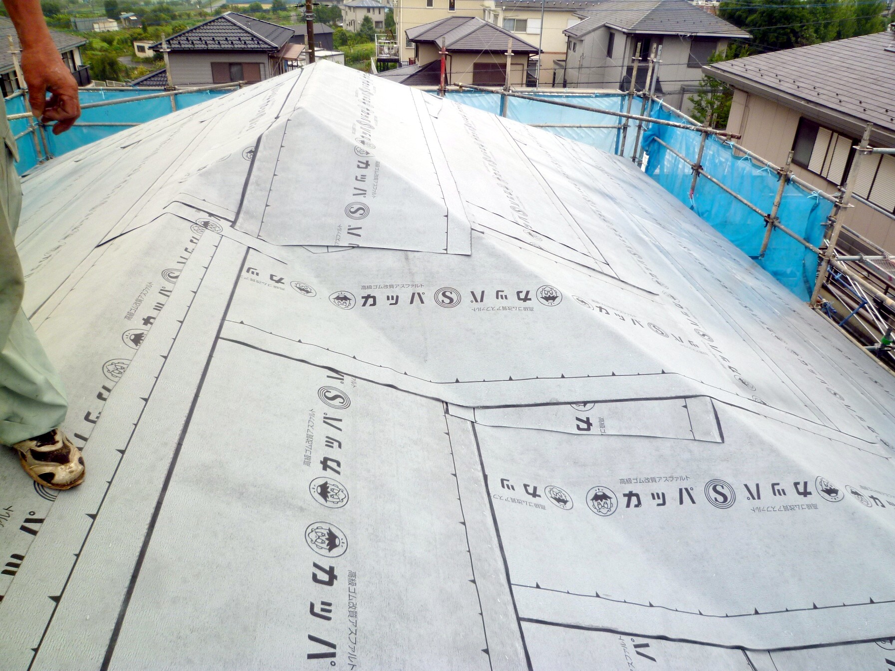 先週、屋根の断熱材敷き込み、二重垂木取り付け完了。