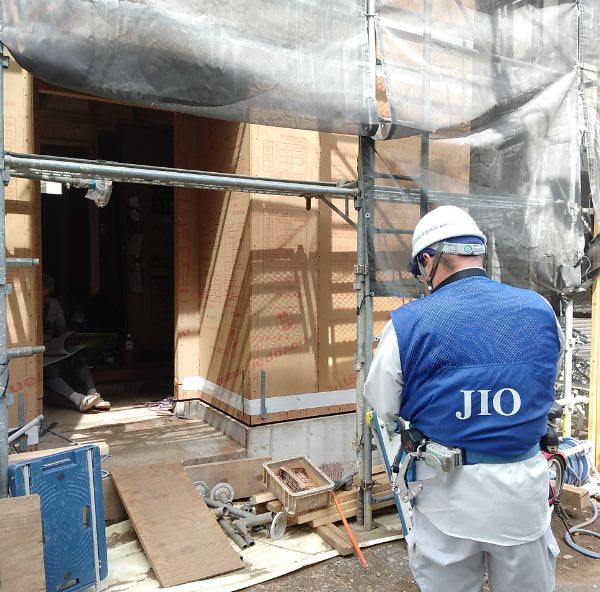JIOによる構造体の中間検査。指摘事項無く終了しました。 ※JIO:日本住宅保証検査機構とは、お客様に代わり、専門家が地盤調査からお引渡しまで厳しい検査を行い、さらにお引渡し後10年間保証する安心の第三者機関です。 現場検査員が金具や柱などの適正な部材が、図面通りに配置、設置されているかどうかなど、一つ一つ全て検査していきます。 保証機関は当然高品質の住宅のみを保証しますので、厳しい検査が行われるのです。 よって事実上は補修工事にかかる金銭的な保証と同時に建物の品質も保証しているといえるでしょう。 |