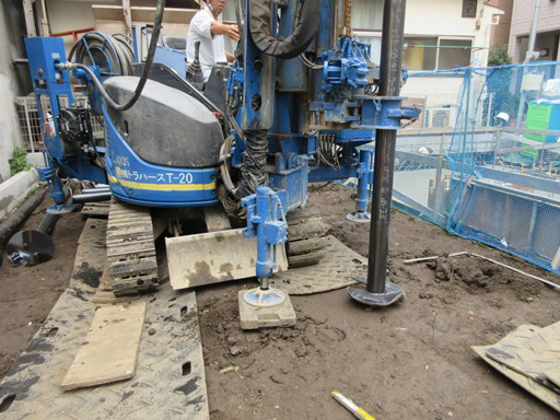 文京区Ya邸、地盤調査が終わり、引き続き地盤改良に着手。 改良工事には鋼管杭工法を採用しました。 ←鋼管杭打ち込み ※地盤調査、改良工事について 地盤の正体は外から見ただけでは判りません。 不同沈下や液状化、崖崩れなど建物を脅かす被害を未然に防ぐために、地盤の状況を調査し、必要があれば、それぞれの建物に適合した地盤を人工的に確保するために改良を加えます。 地盤を含めた基礎、構造体が建物を長持ちさせ、家族の安全を守ります。 当社は、常にこれを最優先に考えています。 ※鋼管杭工法とは 地中に鋼製の杭を打ち込んで建物を支える工法で、地盤が軟弱な場合に行われ、深度(深さ)は8~30mほどまで施工可能です。 鋼管杭工法は、地盤である土に手を加えて良好地盤を造るのではなく、地中深くにある支持地盤まで杭を打ち込みます。 そのため、大きな地震でも耐え抜くことができます。 |