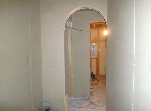 板橋区Iy邸、造作工事(石膏ボード貼り作業中) ←1階石膏ボード貼り |