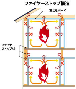 ←1階躯体壁組み終了 ↓ファイヤーストップ図 |
