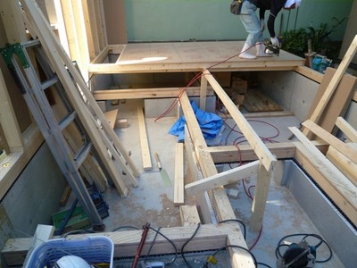 中野区H邸、屋上バルコニー躯体組中。お施主様のご協力を得て23日(日)見学会をさせていただきます。 塔屋及びバルコニー壁 |