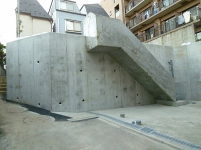 新宿区E邸、行政指導により、古い擁壁を撤去し新擁壁完成。道路補修も終了。 新擁壁・宅地への階段・道路補修 |