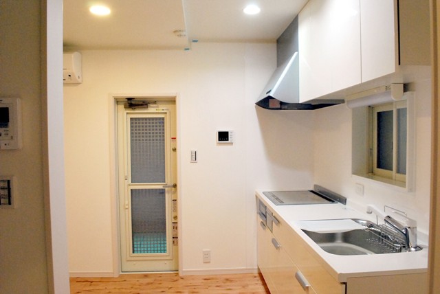「狭小地」の敷地いっぱいに建てる要望により、「サイディング貼り建て起し」というオリジナル工法にて施工。